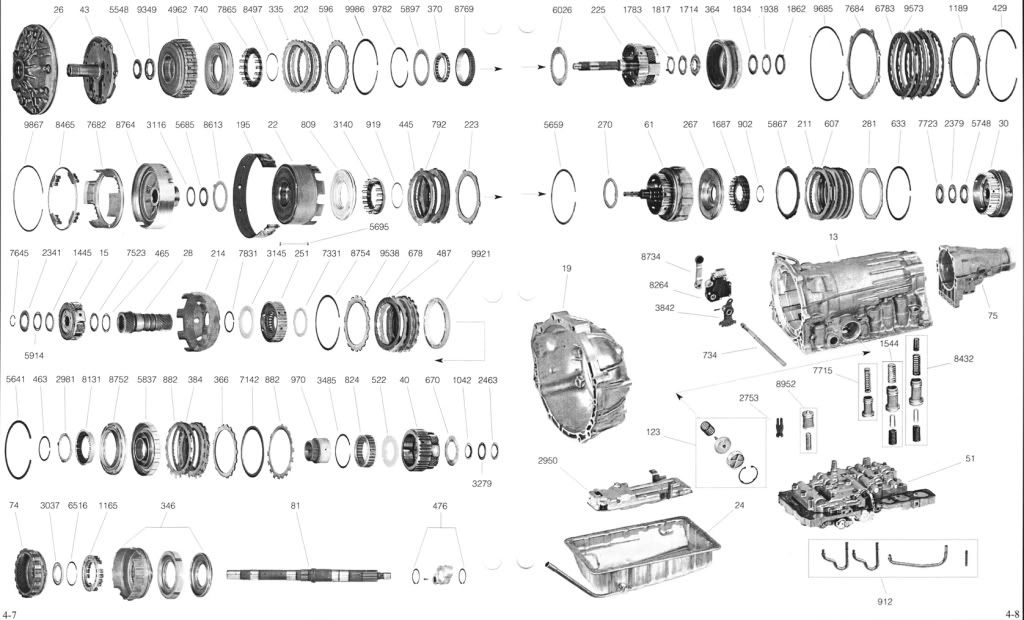 salomon 0 Posted July 24, 2013 Прошлое воскресенье загарал на даче , погода была супер гуд и было время ))для лучшего загара -достал с гаража автомат который сжег в прошлом сезоне на штатном охлаждении отмыл его солярой с кисточкой и промыл Керхером с пеной Вскрыл пол коробки , остальную половину разберу как куплю длиные щипцы для снятия стопорных колец , короткими не подлезть .Вскрытие первой части акпп показало :1)фрикционы и платы 3-4 передачи в хороем состоянии , они вообщем почти вечные 2)игольчатые подшибники и фторопластовые шайбы и планетарки в идеале 3) все резинки и сальники мягкие и еще им служить и служить теперь то что надо поменять 4)фрикционы (номер 792 ) директ клатча(деталь номер 22) соженны до метала ,образивного материалла на фриках вообще не осталось 5)фрики (номер 607) форвард клатча (номер 61) тоже в мусорку скорее всего стальные платы между фриками в обоих пакетах тоже на замену , их надо будет потом проверить на плоскость в сборе директ клатч и форвард клатч это типо Стартовый Пакет в основном он сгорает в первую очередь фрики 1и задней передачи и фрики 2передачи скорее всего тоже в мусорку больно зазор огромный через контрольное окно в этих пакетах , НО до них я доберусь в следущий раз как куплю щипцы тормозную ленту (195 деталь) тоже под замену на ней не видно парт номера , а это значит менять .. Share this post Link to post Share on other sites