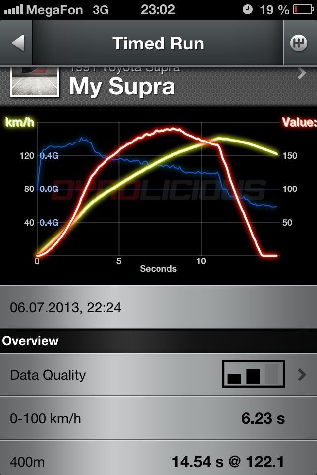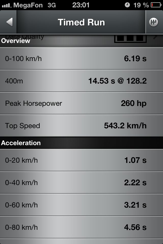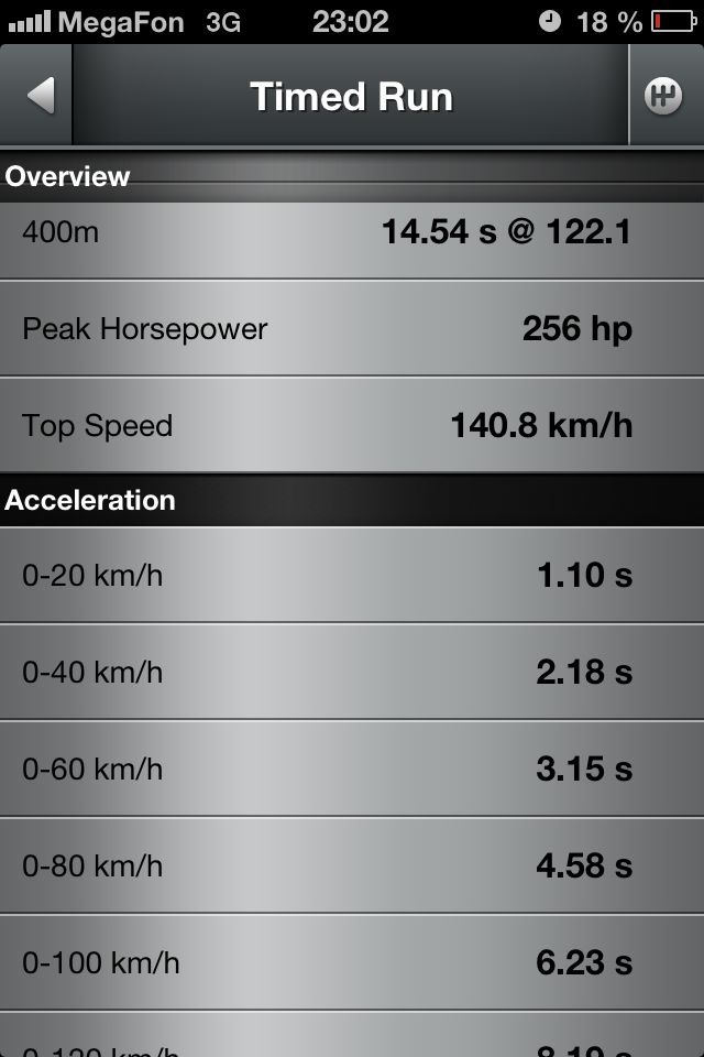 salomon 0 Posted July 7, 2013 ага чето много прога рисанула замерял раза 3 это лучшее время из трех заездов!вот другие данные все заезды были на килограмме больше давить не дает 245 резина , надо хорошую японскую резю на 265-275 и буст можно на 1,4 ставить 😈время др сотни 6,23 секчетверть мили 14,61както херово едит ((( Share this post Link to post Share on other sites